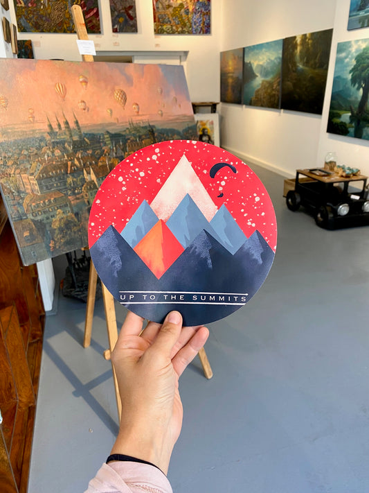 Up to the Summits – Outdoor Sticker für Abenteurer & Gleitschirm-Fans (Ø 20 cm)