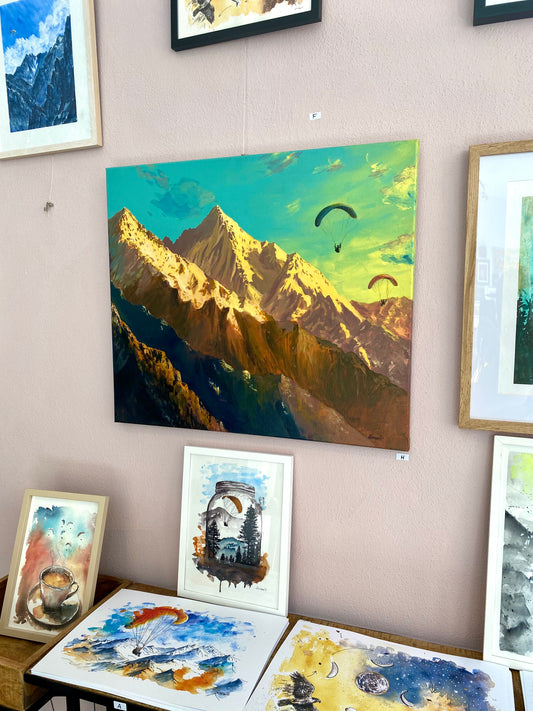 Abendflug - Originalgemälde Gleitschirm & Berge - Acryl auf Leinwand