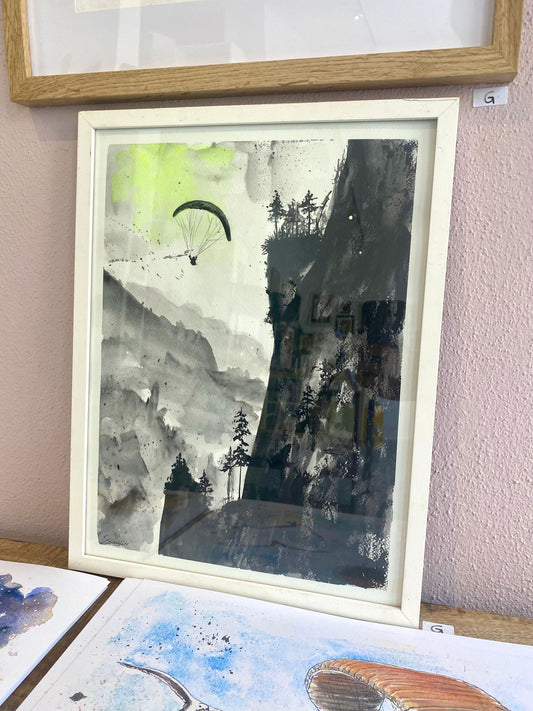 Stein und Wind - Artful Paragliding Original Aquarell Gleitschirm Kunst