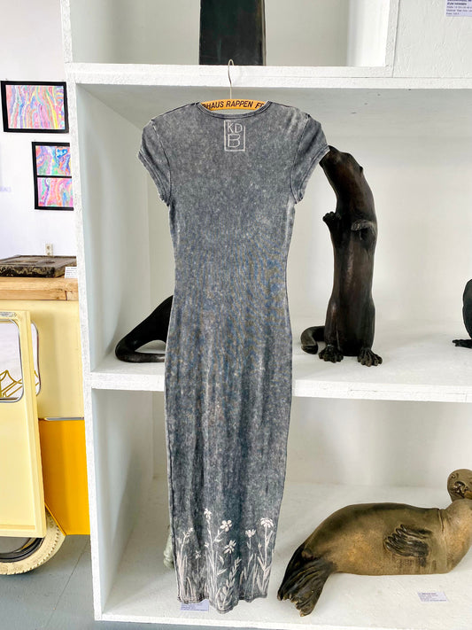 Unikat: Handgebleichtes Sommerkleid mit Wildblumenmotiv – Größe M
