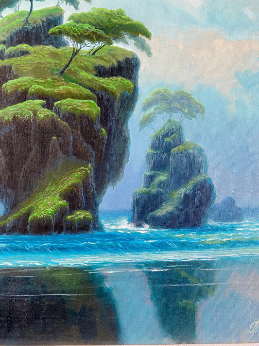 BROCCOLI – Surreales Inselgemälde von Pavel Fedorov Originalgemälde – Öl auf Leinwand