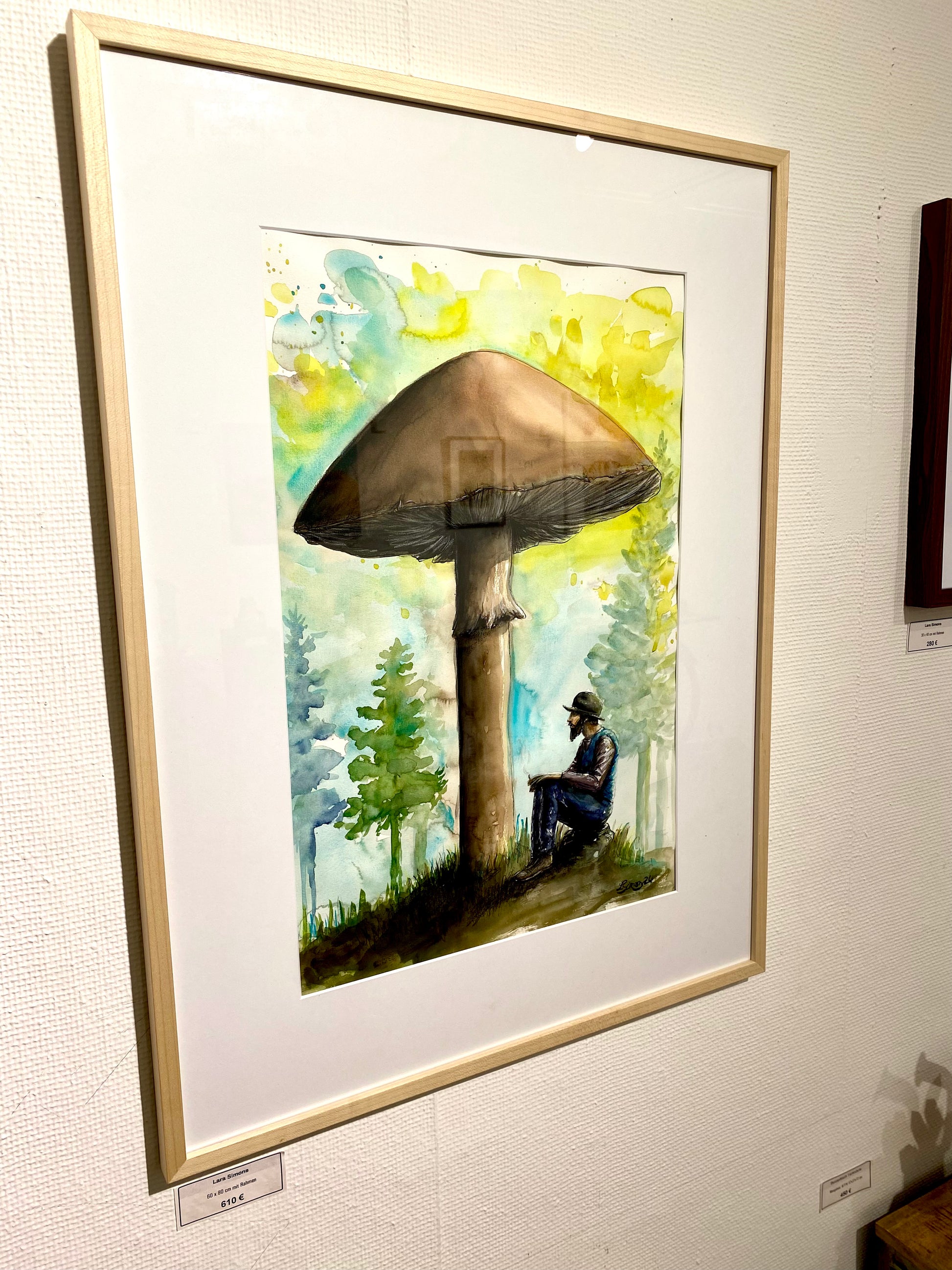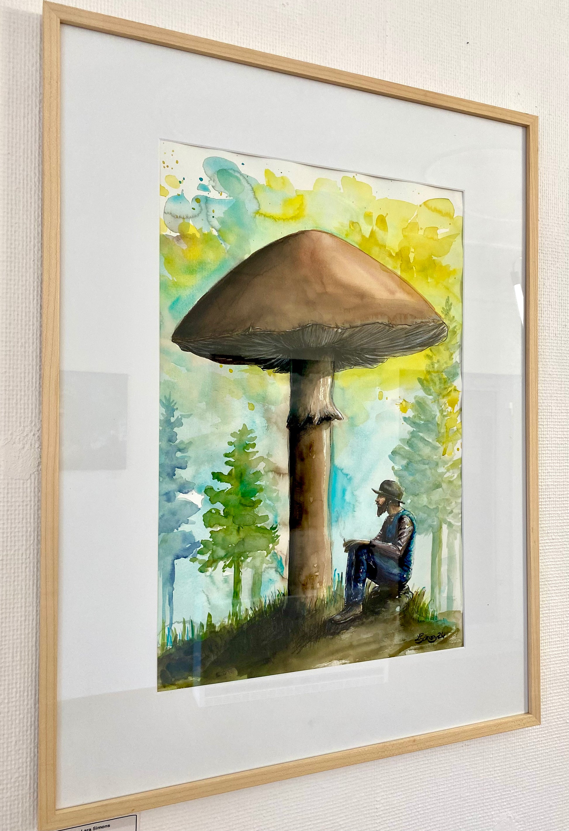Dieses Kunstwerk verbindet die Themen der menschlichen Verbundenheit zur Natur mit Anspielungen auf den Konsum psychedelischer Pilze. Eine Person sitzt in kontemplativer Ruhe unter einem überdimensionalen Pilz, so als würden diese wie Bäume wachsen. Die leuchtenden Farben und die atmosphärische Darstellung laden dazu ein, über die Harmonie zwischen Mensch und Natur sowie die Grenzen der Wahrnehmung nachzudenken.